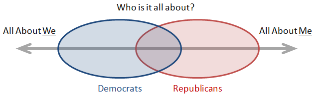 I’ve thought about those questions and unshackled by the need for definitive proof or irrefutable facts my conclusion is that there are two political party poles on the scale of altruism, the party of “We” and the party of “Me”. The sweet spot is in the middle where there is party overlap and “We” balances “Me” but I fear the ellipses are migrating toward the extremes to the detriment of all.