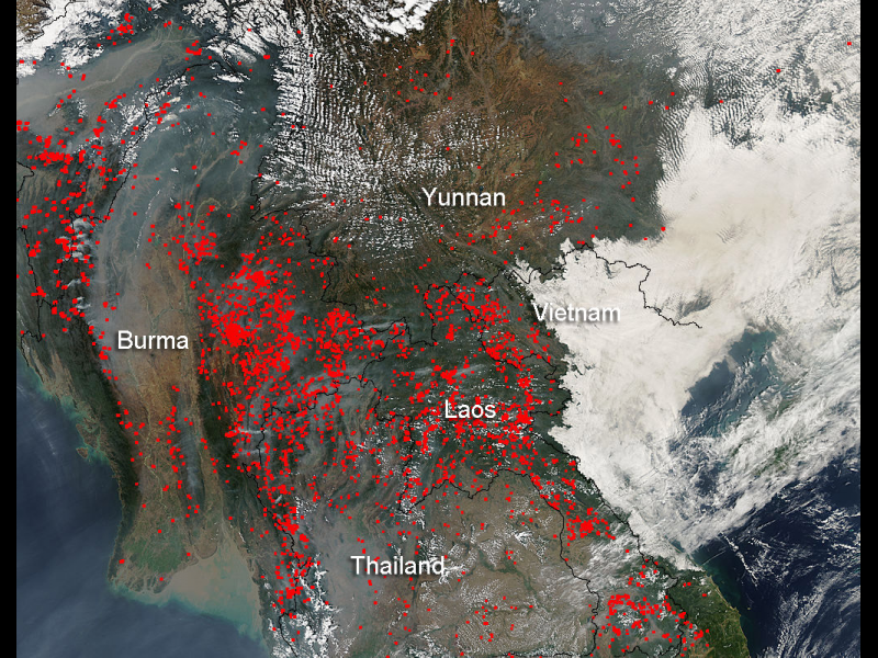 Above. As roads penetrate into the Amazon Rainforest, fires and deforestation follow. This image from August 5, 2007, shows scores of fires burning along roads and at the edges of already cleared areas of the Amazon in southern Para and northern Mato Grosso states in Brazil. The image and fire detections (marked in red) were captured by the Moderate Resolution Imaging Spectroradiometer (MODIS) on NASA’s Aqua satellite. (http://earthobservatory.nasa.gov/NaturalHazards/view.php?id=18860) Below. Not all burning takes place in the Amazon as we Americans are experts at burning fossil fuel through our irreplaceable SUVs.