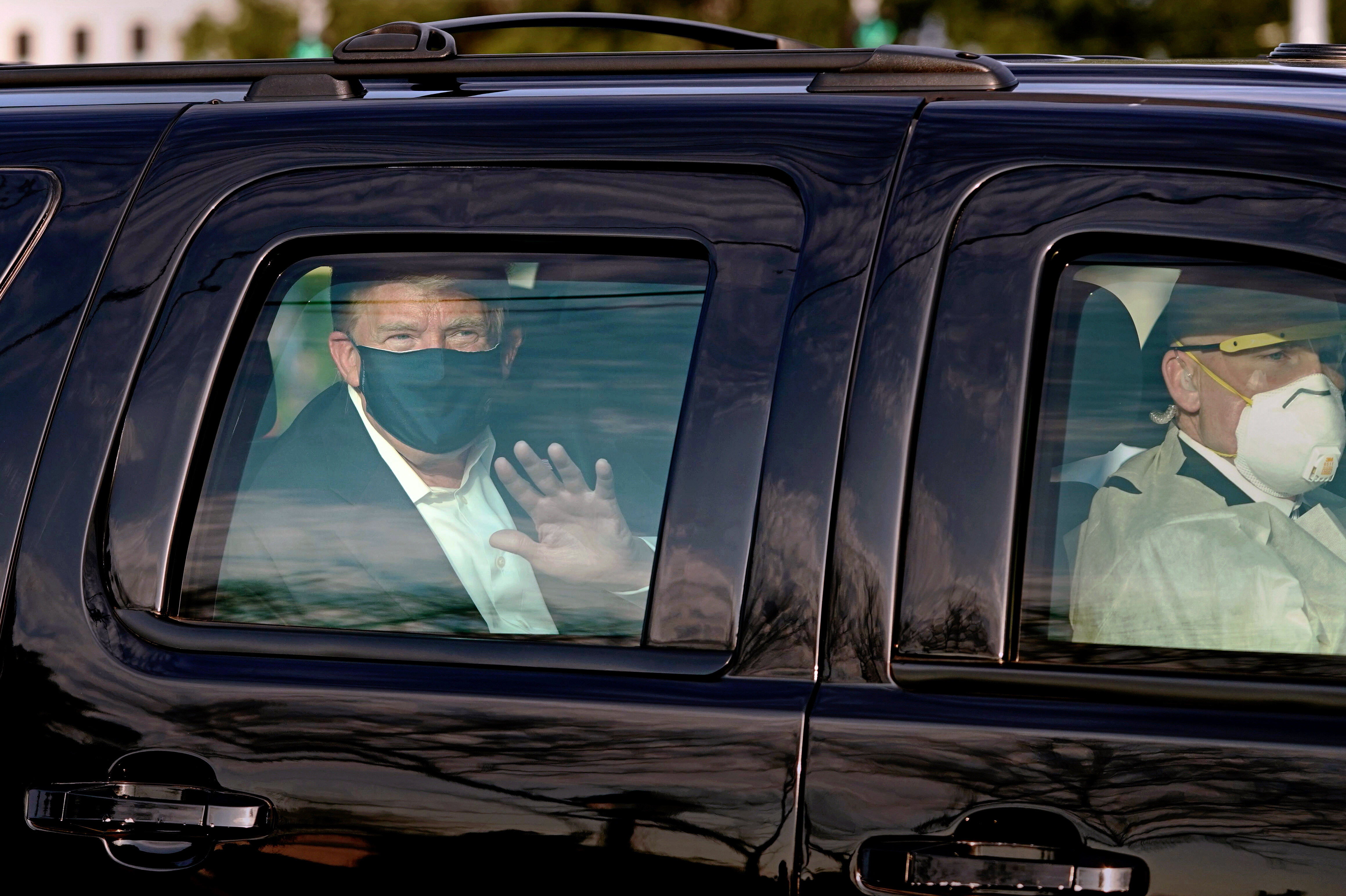 Trump in car Posted on October 5, 2020 by sbarefoot Share this: Click to share on X (Opens in new window) X Click to share on Facebook (Opens in new window) Facebook Click to email a link to a friend (Opens in new window) Email Like Loading...